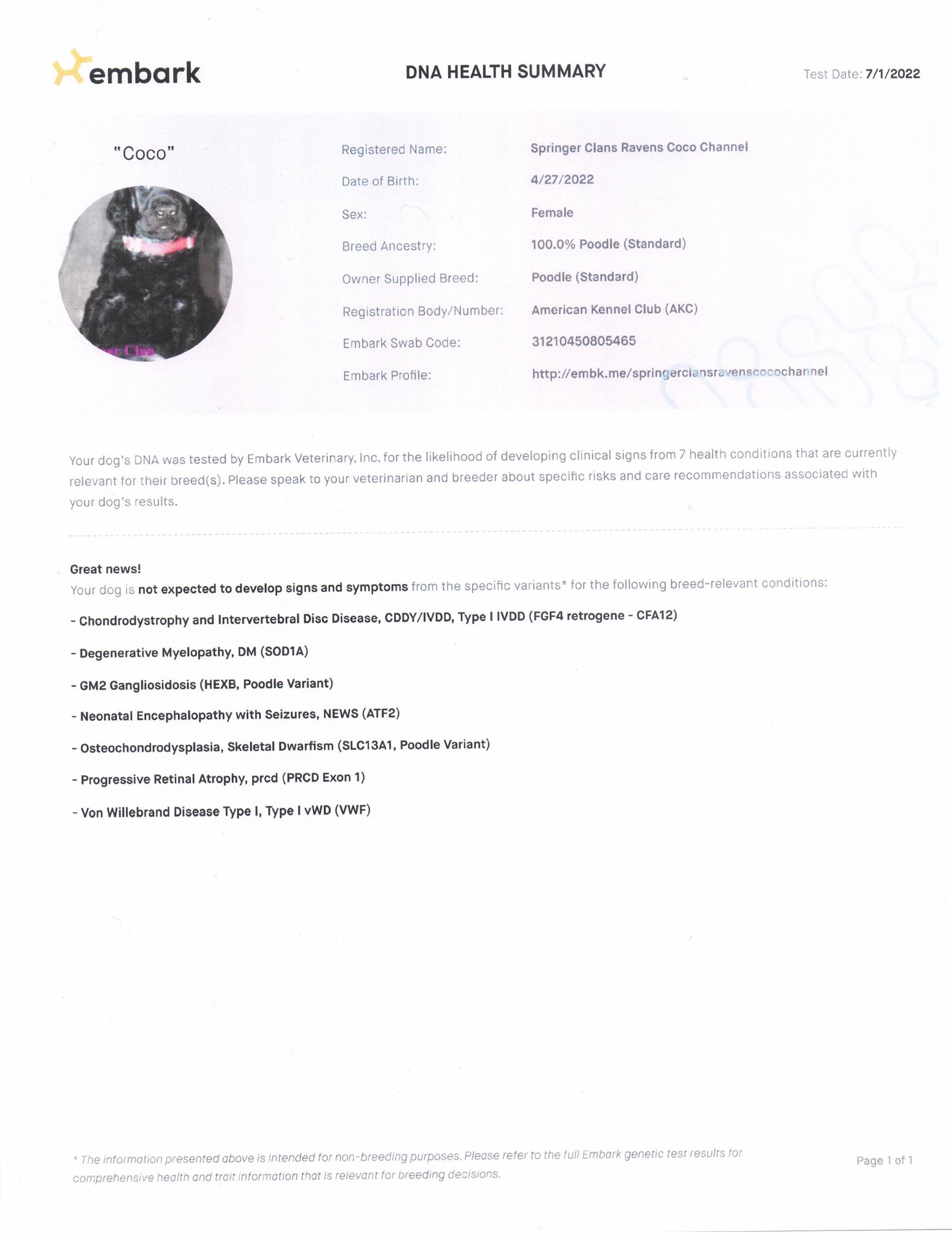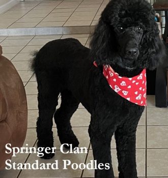 Coco is multi generation SCSPoodle – We are very proud of her elegant demeanor and jet black coat color. She is very calm and regal, but can also behave like a puppy at times. We look forward to seeing how she raises her pups for you.